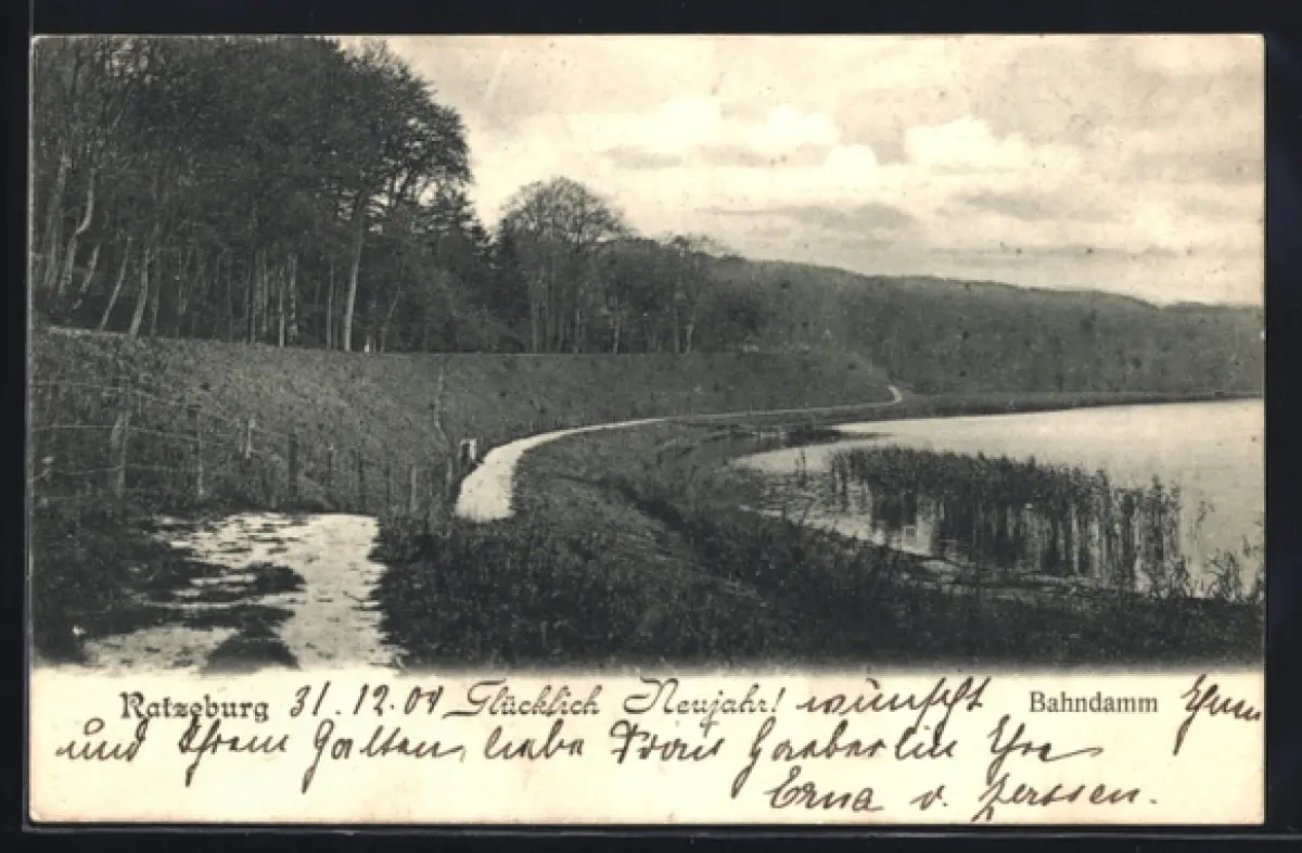 AK Ratzeburg, Bahndamm mit Wasserblick, Neujahrsgruss