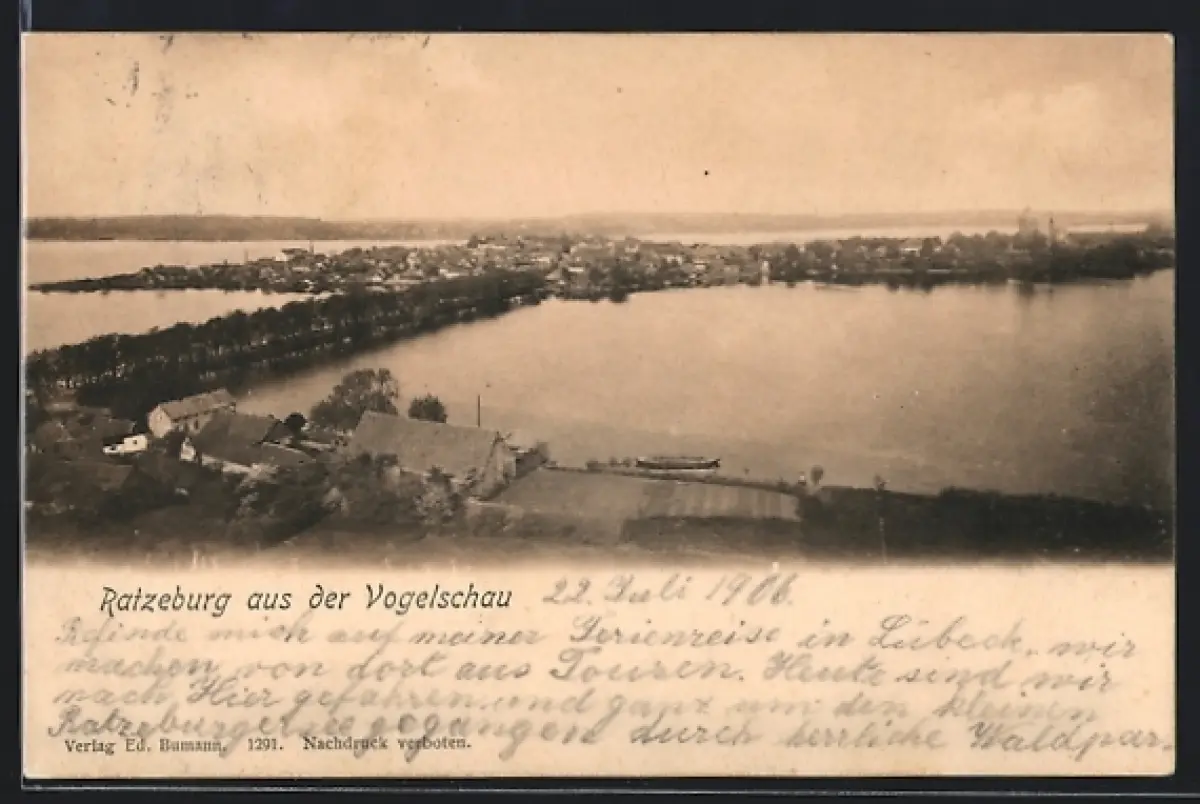 AK Ratzeburg, Blick aus der Vogelschau auf Stadt und See