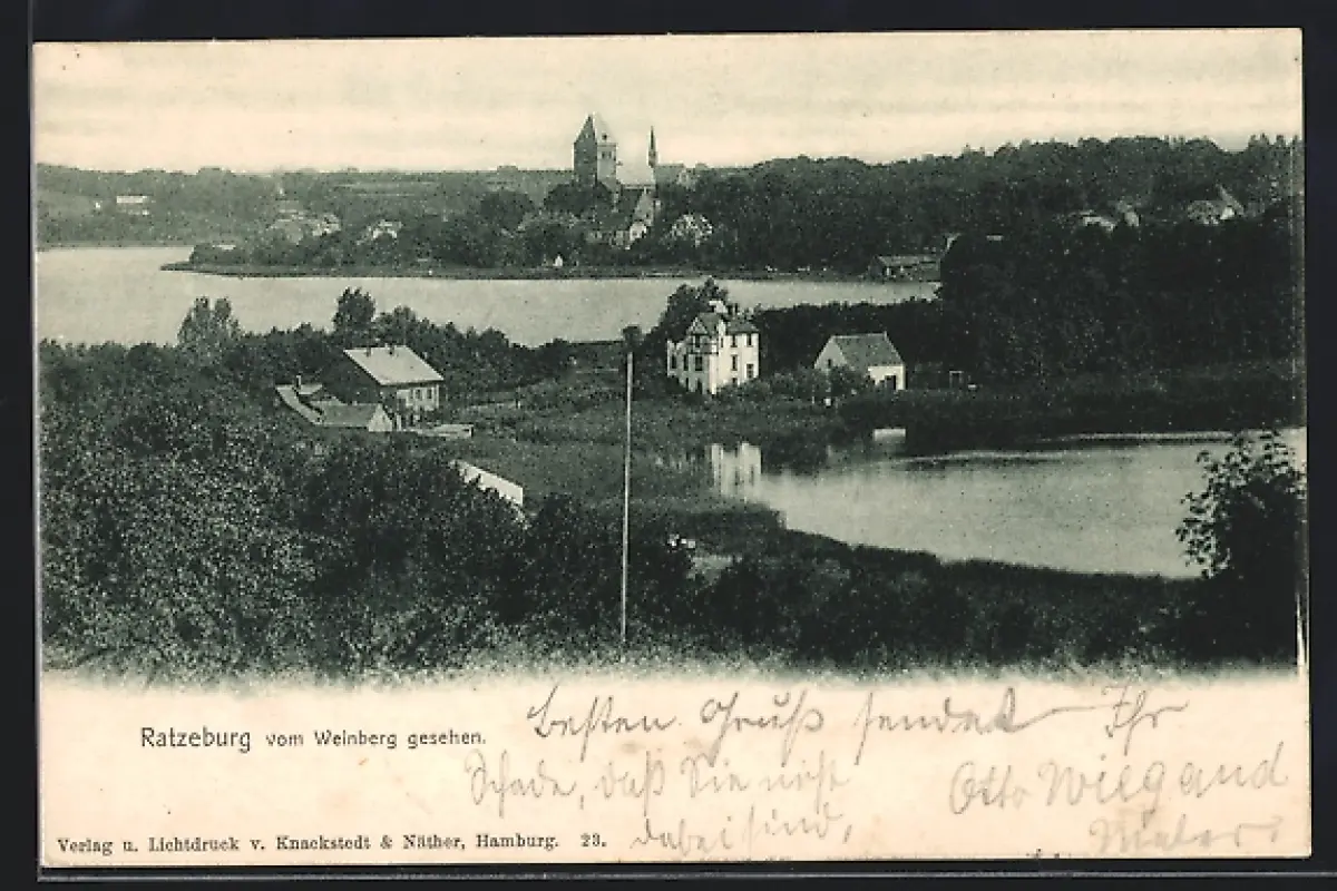 AK Ratzeburg, Blick vom Weinberg auf See und Dom