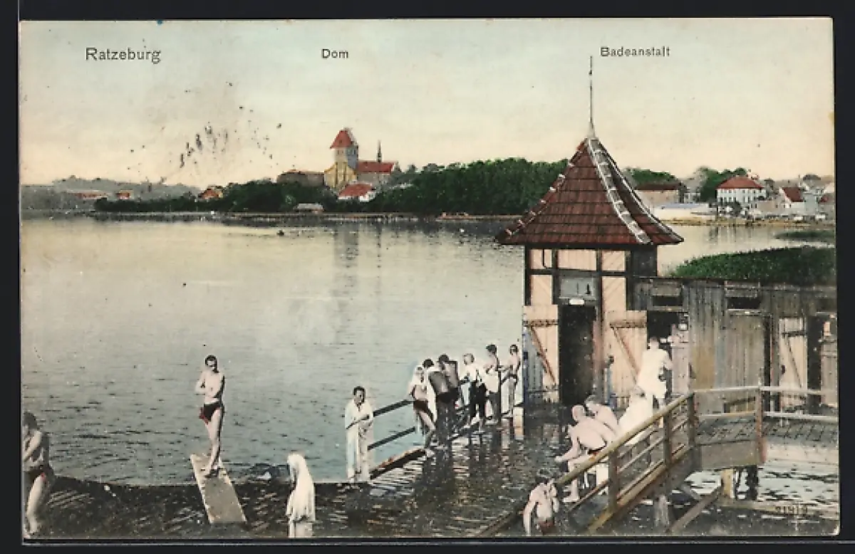 AK Ratzeburg, Blick von der Badeanstalt zum Dom