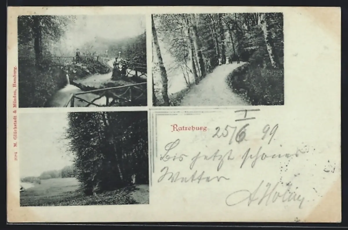 AK Ratzeburg, Brücke, Waldweg, Landschaftsansicht