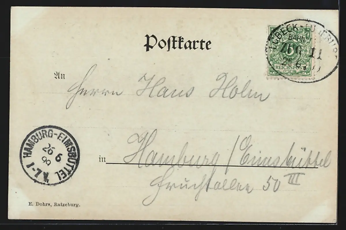 alte Ansichtskarte, gelaufen 1899, guter Zustand
