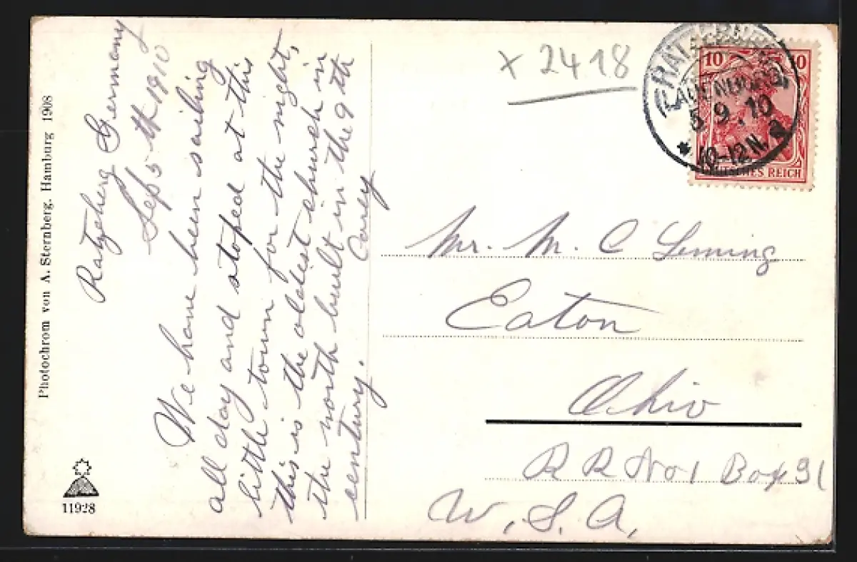alte Ansichtskarte, gelaufen 1910, guter Zustand