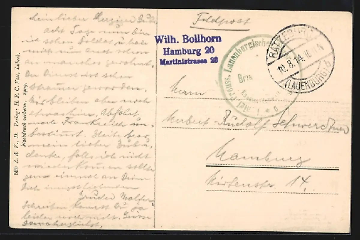alte Ansichtskarte, gelaufen 1914, guter Zustand