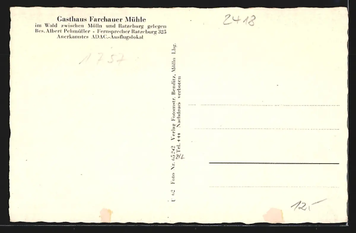 AK Ratzeburg, Gasthaus Farchauer Mühle zwischen Mölln und Ratzeburg