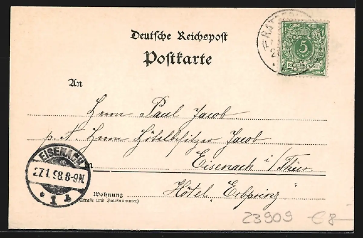 alte Ansichtskarte, gelaufen 1898, Eckknick re. unten, guter Zustand