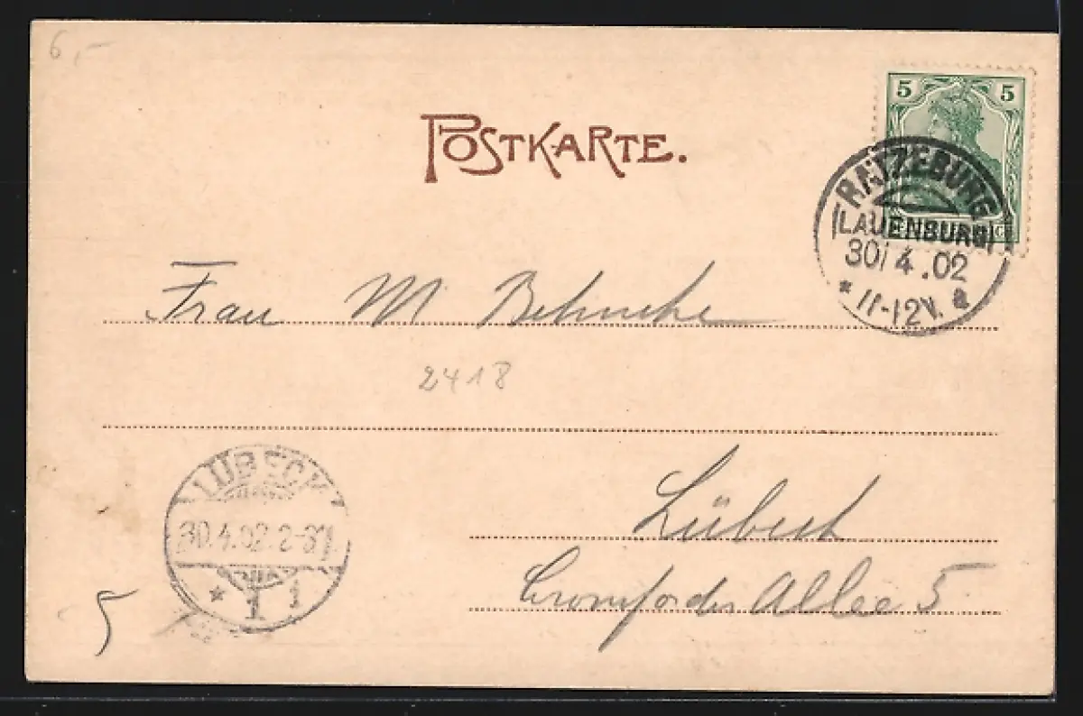 alte Ansichtskarte, gelaufen 1902, guter Zustand