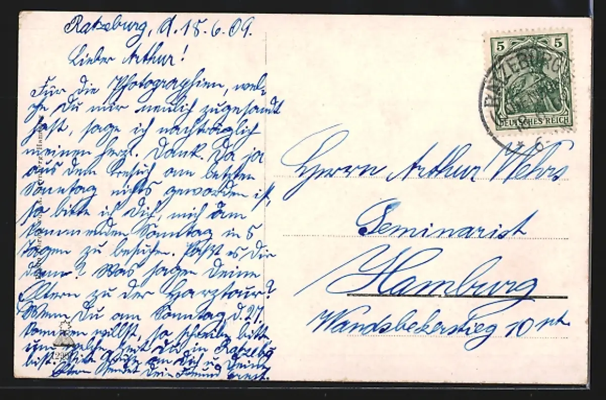 alte Ansichtskarte, gelaufen 1909, guter Zustand