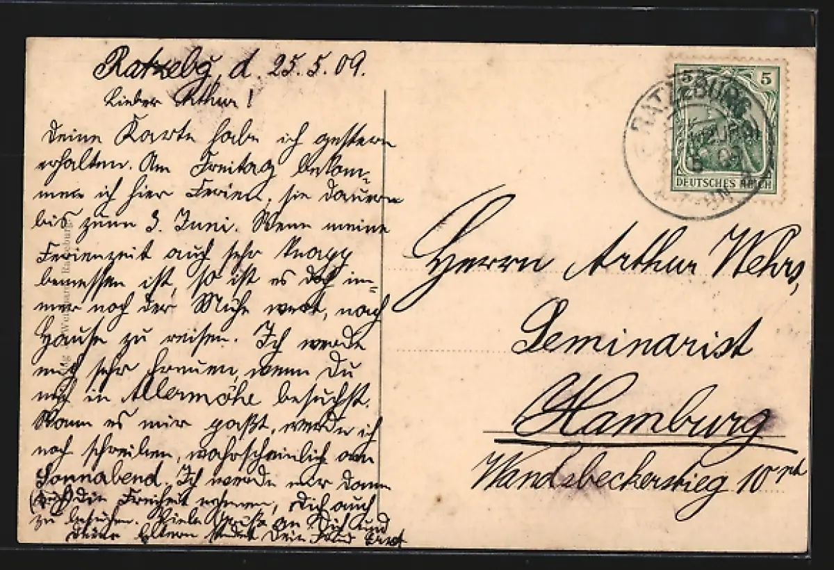 alte Ansichtskarte, gelaufen 1909, guter Zustand