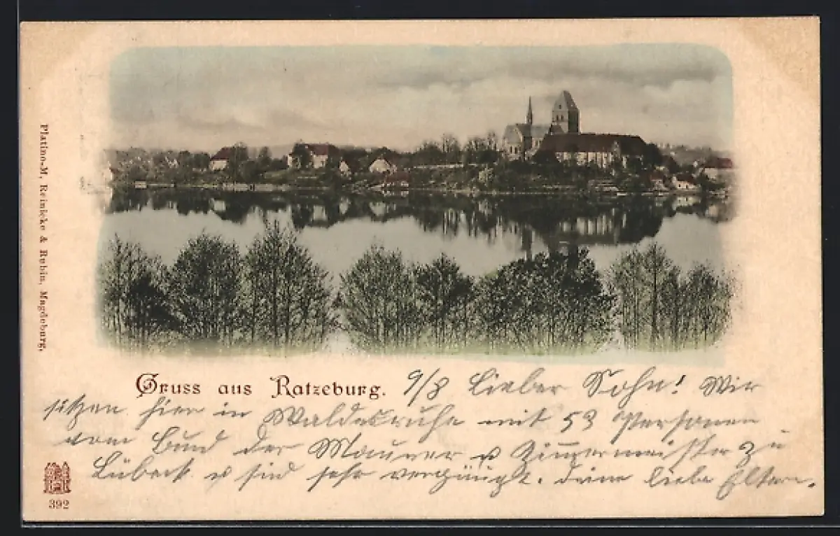 AK Ratzeburg, Stadtansicht mit Dom und See