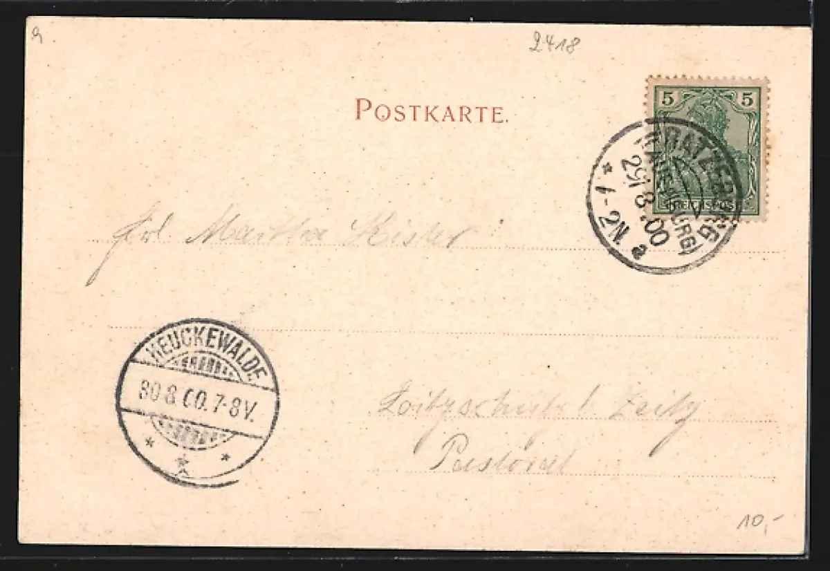 alte Ansichtskarte, gelaufen 1900, guter Zustand