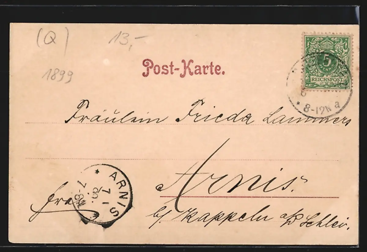 alte Ansichtskarte, gelaufen 1899, Abriebspur re. oben, guter Zustand