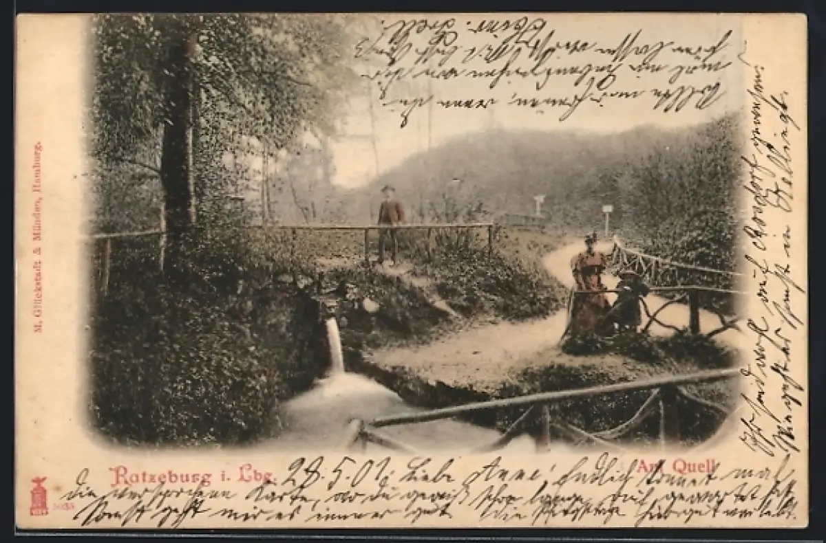 AK Ratzeburg i. Lbg., Am Quell, Brücke, Spazierweg