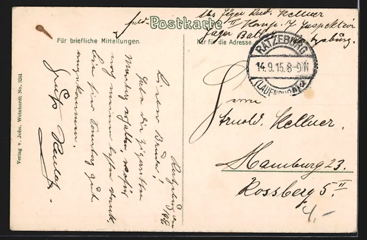 alte Ansichtskarte, gelaufen 1915, Eckknick oben rechts, guter Zustand