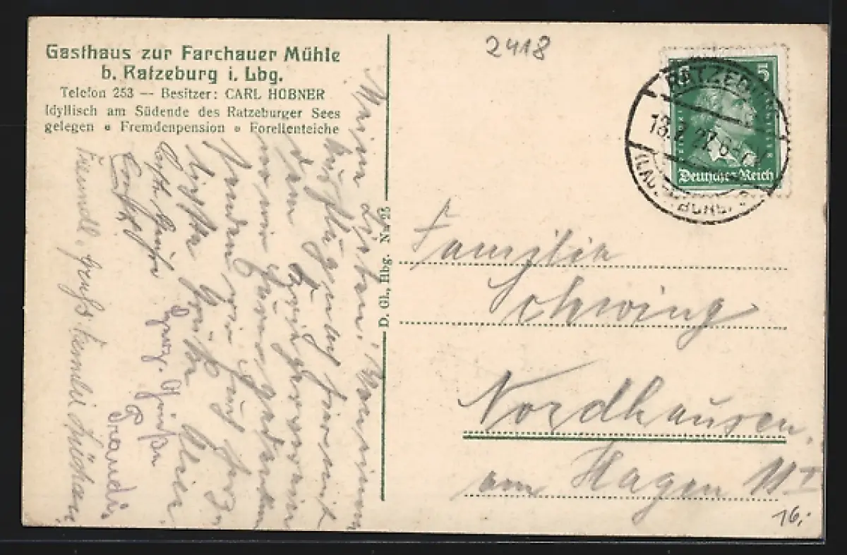 AK Ratzeburg i. Lbg., Gasthaus zur Farchauer Mühle, Inh. Carl Hübner