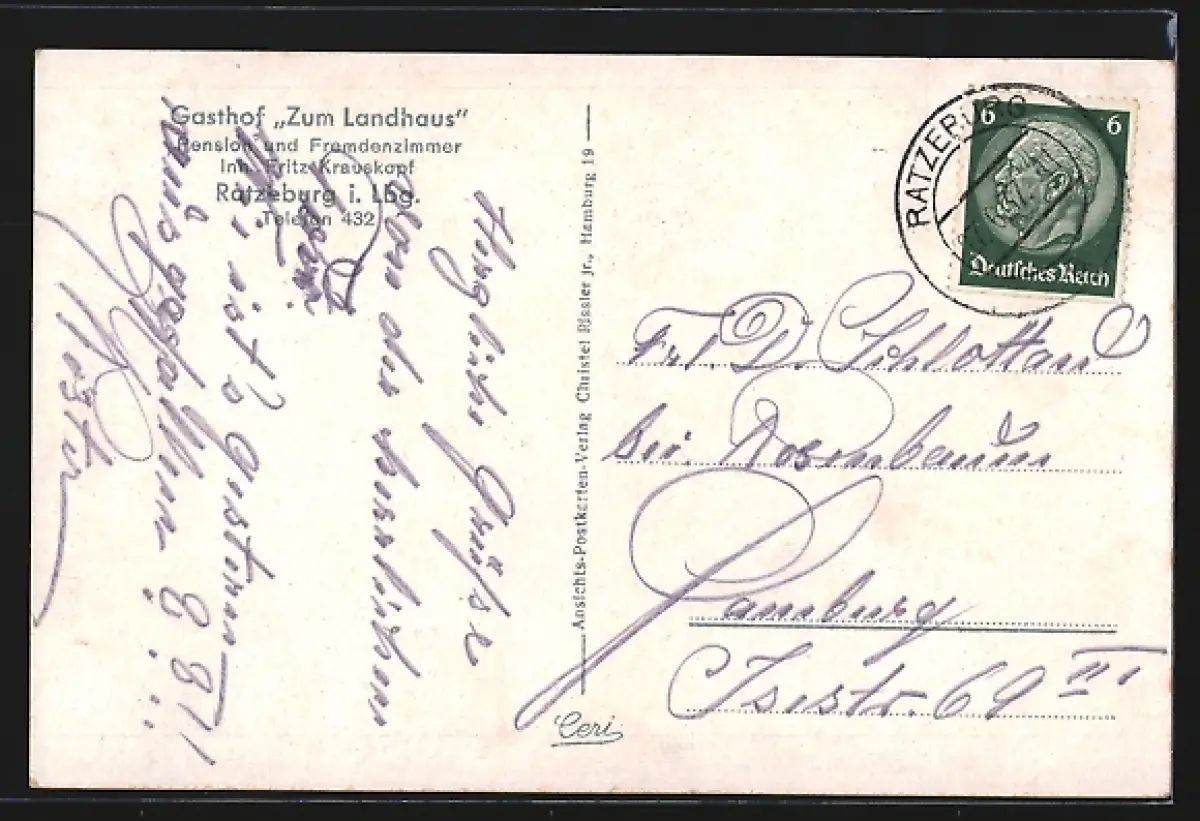 AK Ratzeburg i. Lbg., Gasthof zum Landhaus, Garten, Dompartie