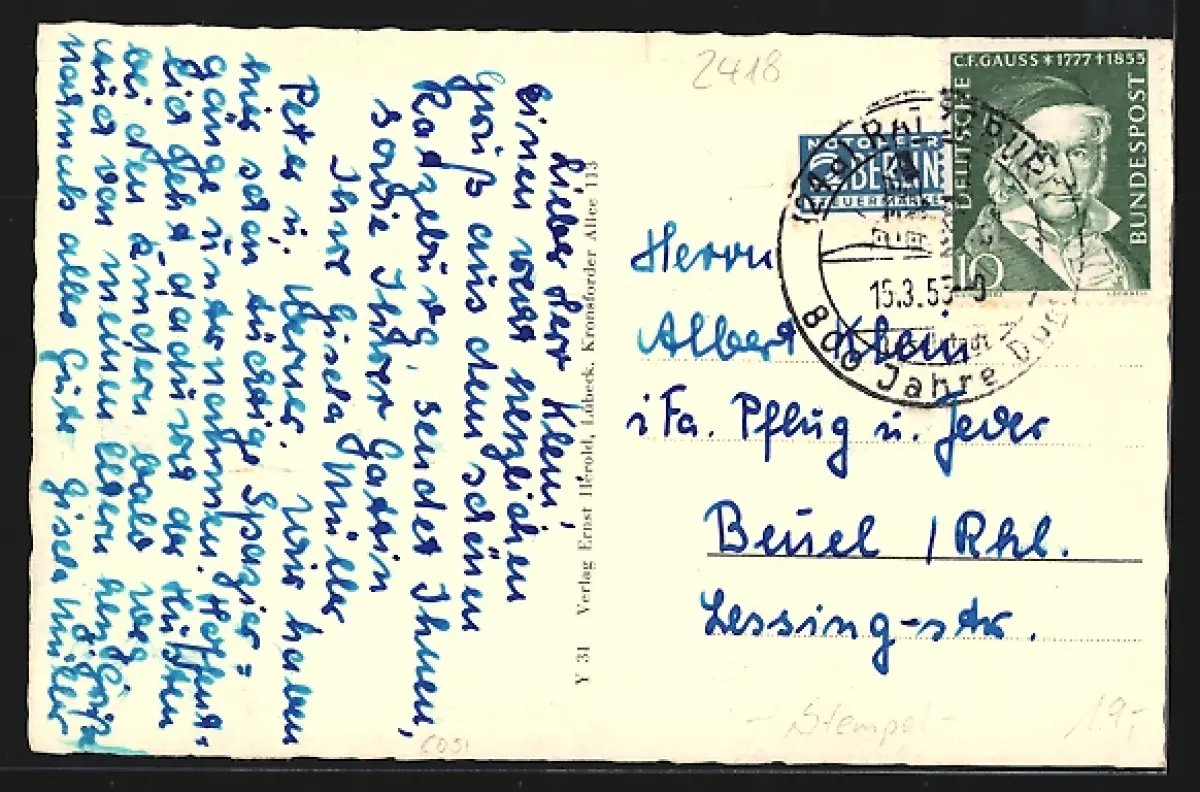 alte Ansichtskarte, gelaufen 1953, guter Zustand