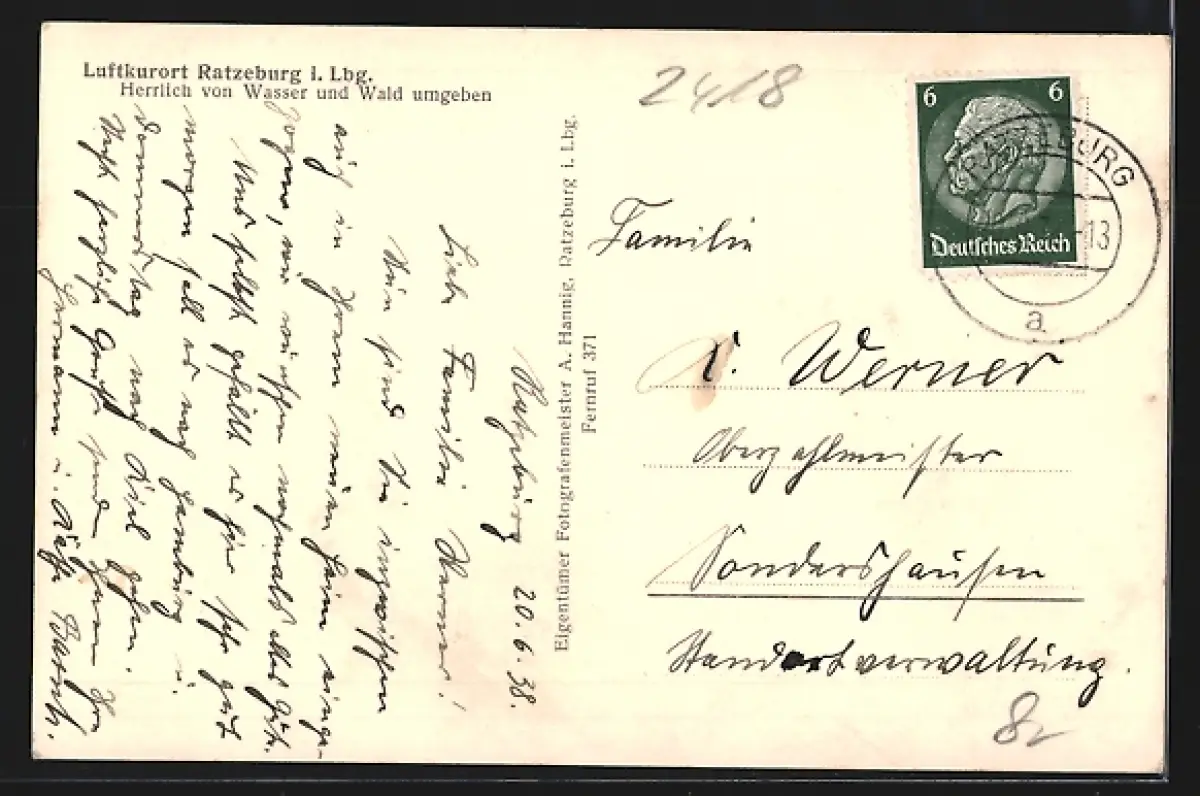 alte Ansichtskarte, gelaufen 1938, guter Zustand