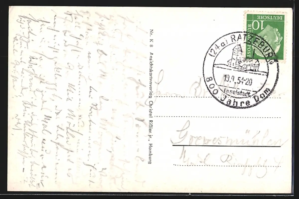 alte Ansichtskarte, gelaufen 1954, guter Zustand