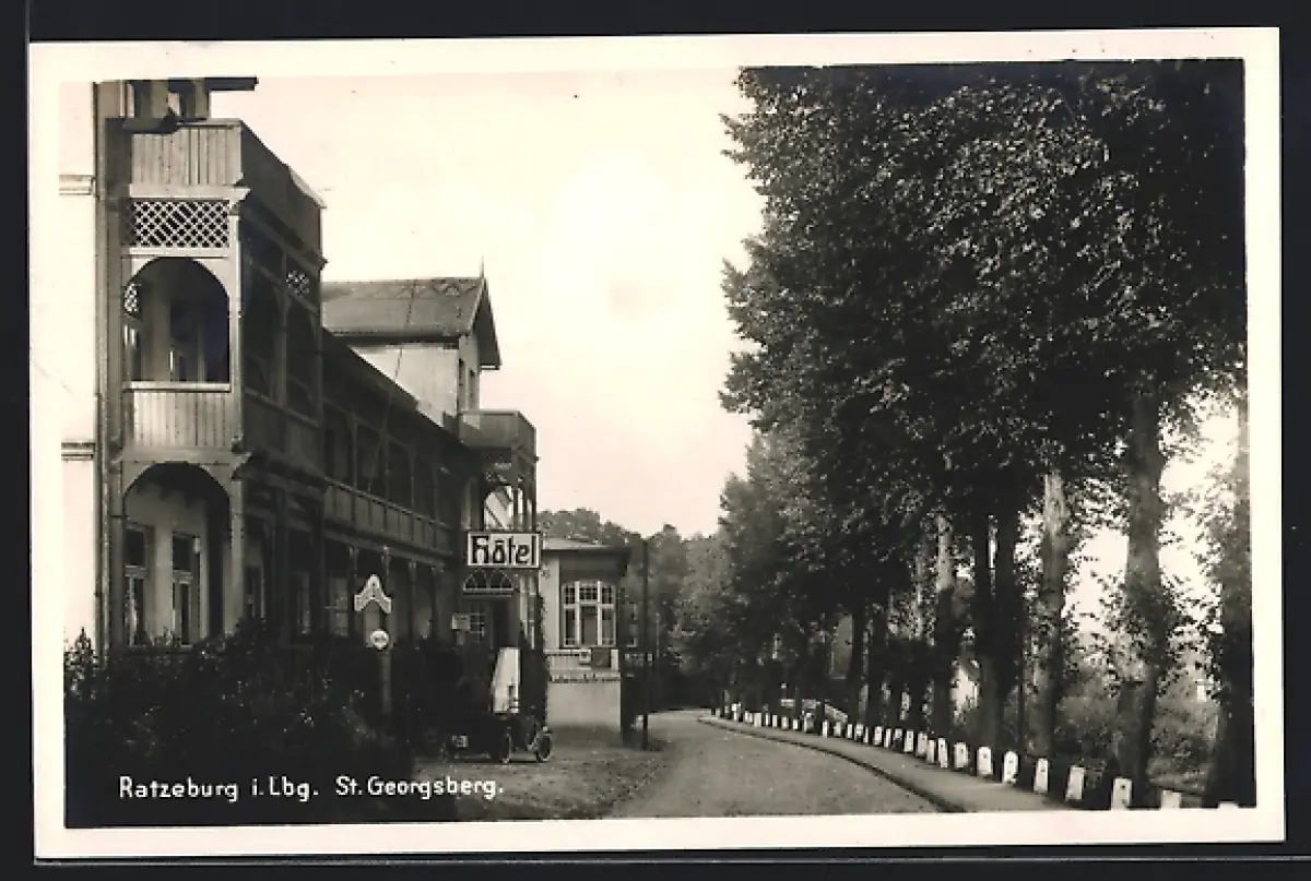 AK Ratzeburg i. Lbg., Strassenpartie am Hotel St. Georgsberg
