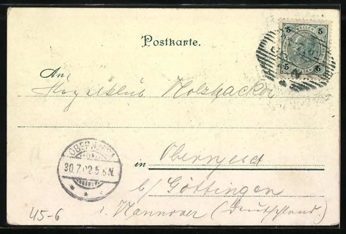 alte Ansichtskarte, gelaufen 1902, Stempelspur, guter Zustand