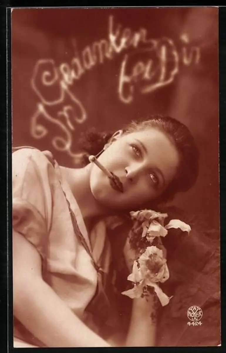 AK Rauchendes Mädchen In Gedanken bei Dir