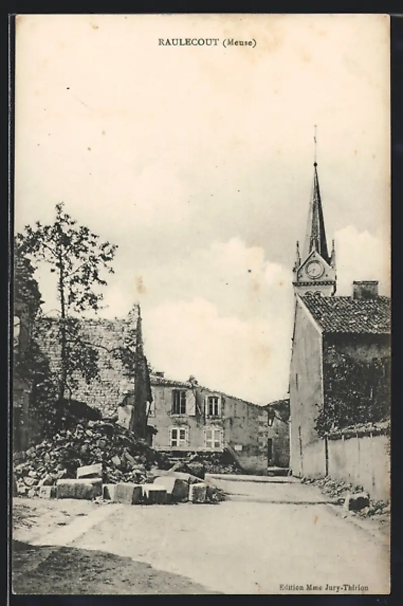 AK Raulecourt /Meuse, Vue de la rue principale avec clocher et bâtiments anciens