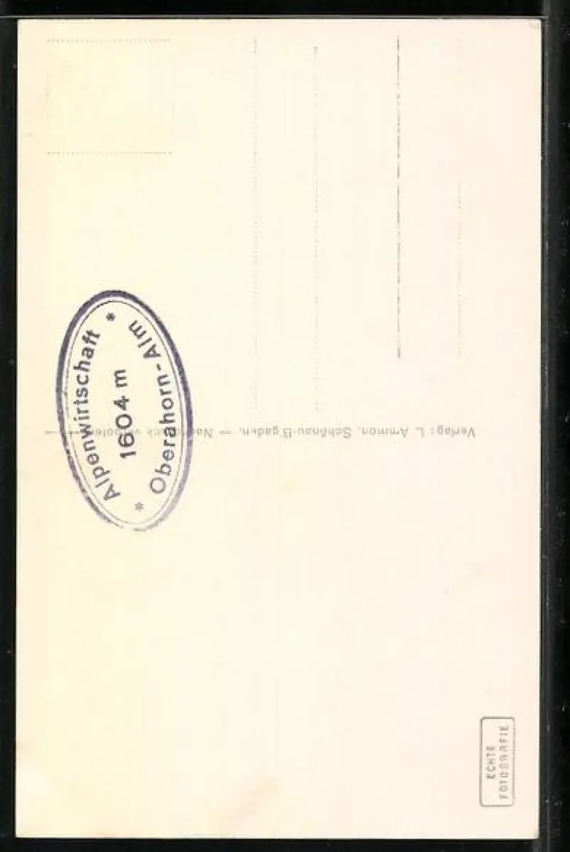 Personenbezogene Daten auf der Rückseite der Karte wurden durch blauen Textmarker unkenntlich gemacht. Die blauen Stellen sind auf die Vorderseite durchgeweicht und wirken sich negativ auf das Postkartenfoto aus