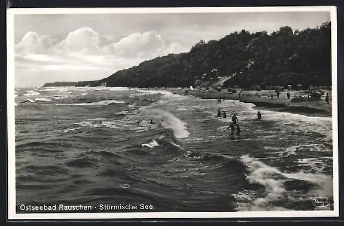 AK Rauschen, Ostseestrand mit anbrandender stürmischer See