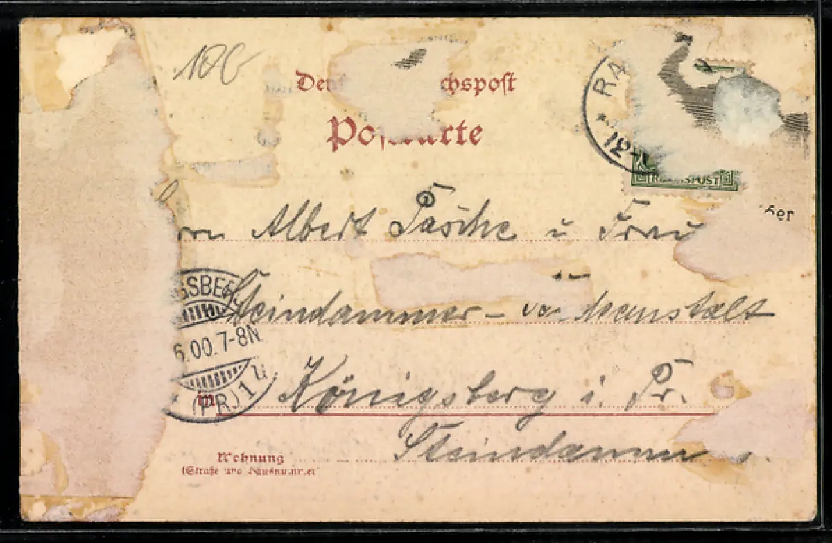 alte Ansichtskarte, gelaufen, rückseitig Klebe- und Papierreste, rückseitig Oberflächenschaden, guter Zustand