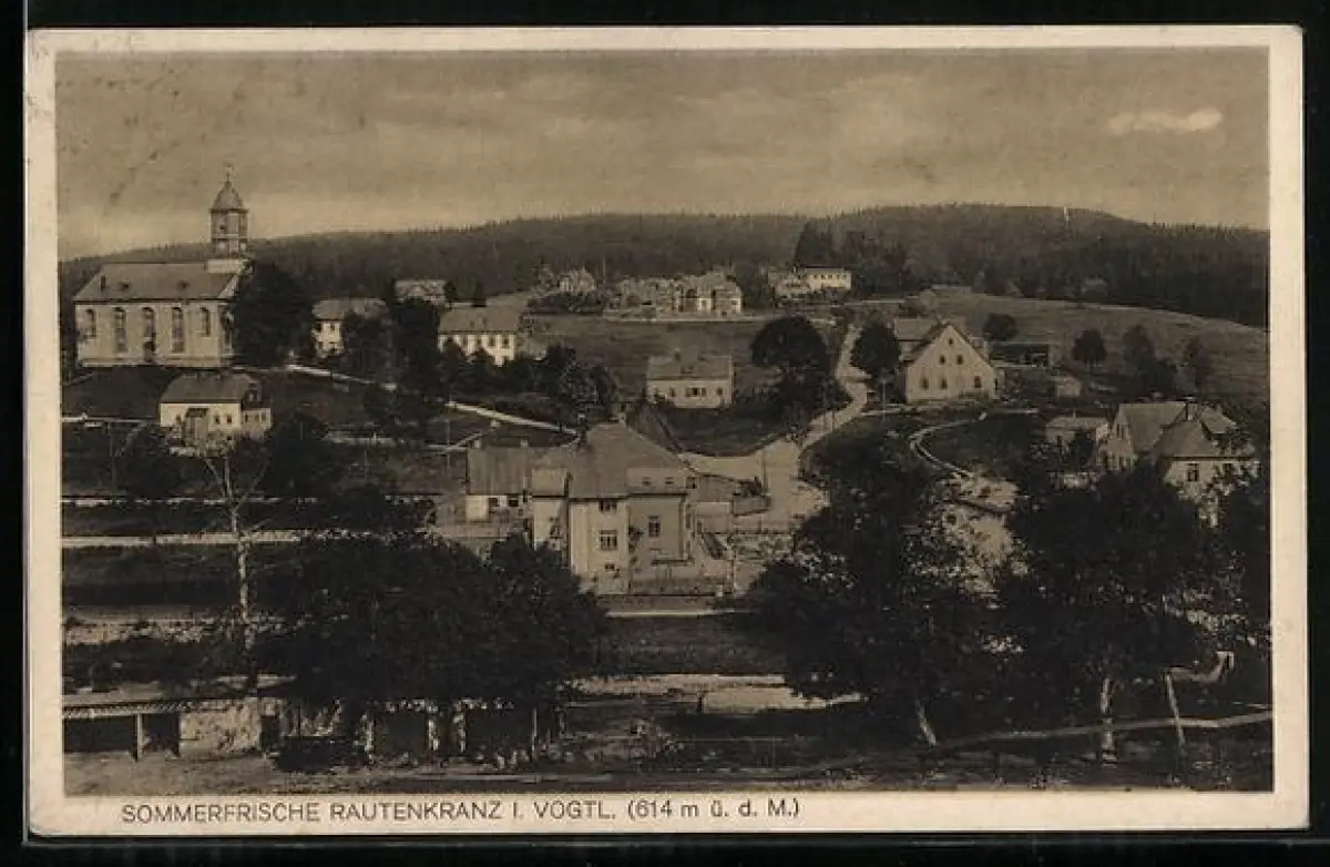AK Rautenkranz i. Vogtl., Ortsansicht mit Kirche