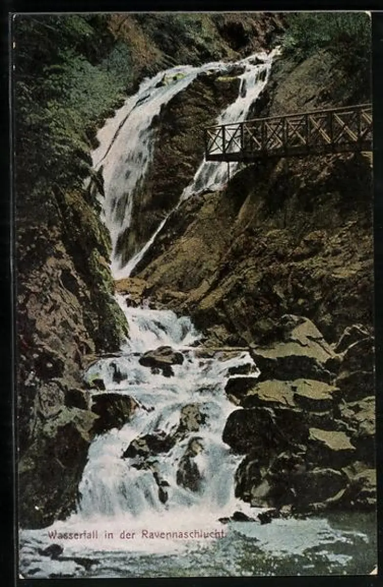 AK Ravennaschlucht, Wasserfall mit Brücke