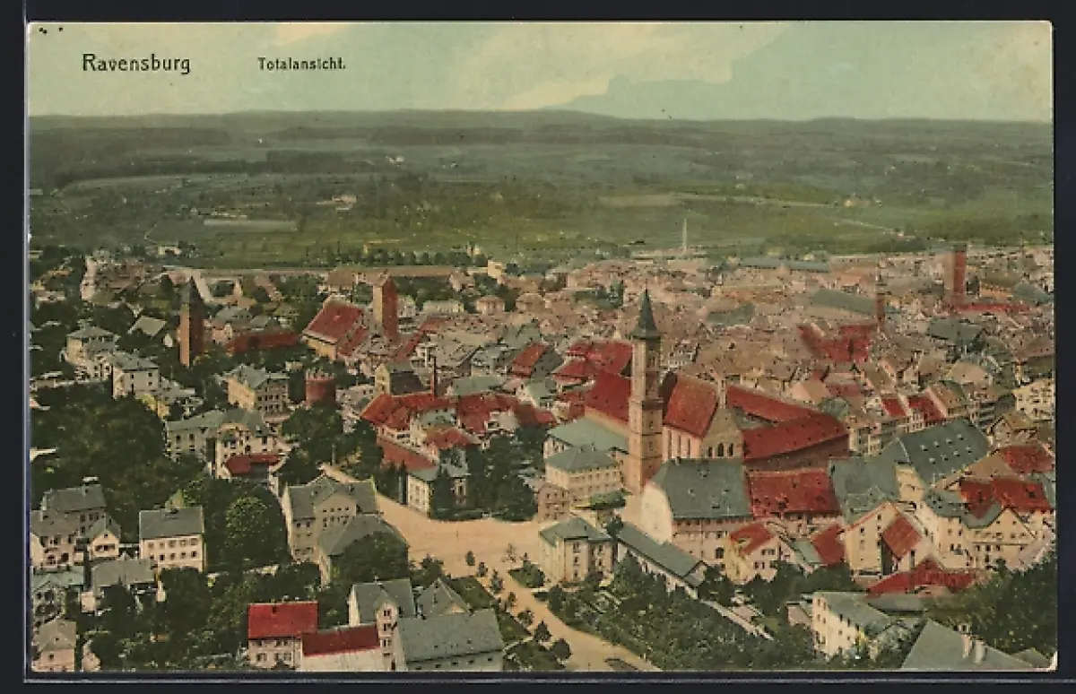 AK Ravensburg / Württ., Totalansicht mit Kirche