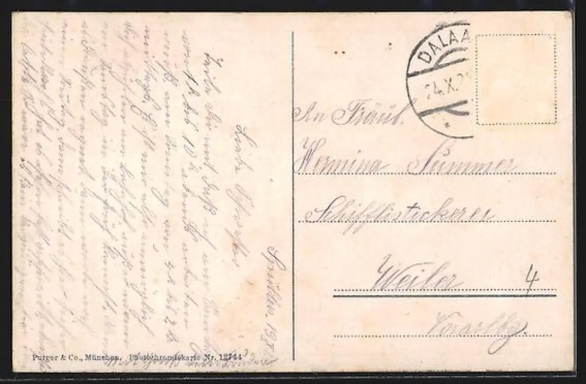 alte Ansichtskarte, gelaufen, Briefmarke entfernt, Stempelspur, guter Zustand