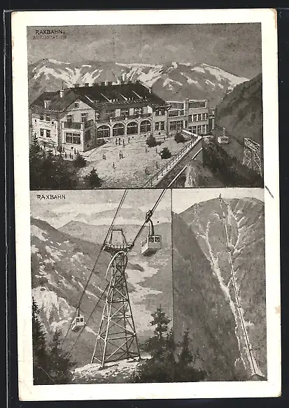 AK Raxbahn-Bergstation und Seilbahn-Verlauf
