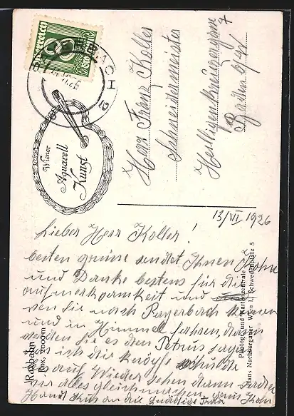 alte Ansichtskarte, gelaufen 1926, Eckknick li. unten, guter Zustand
