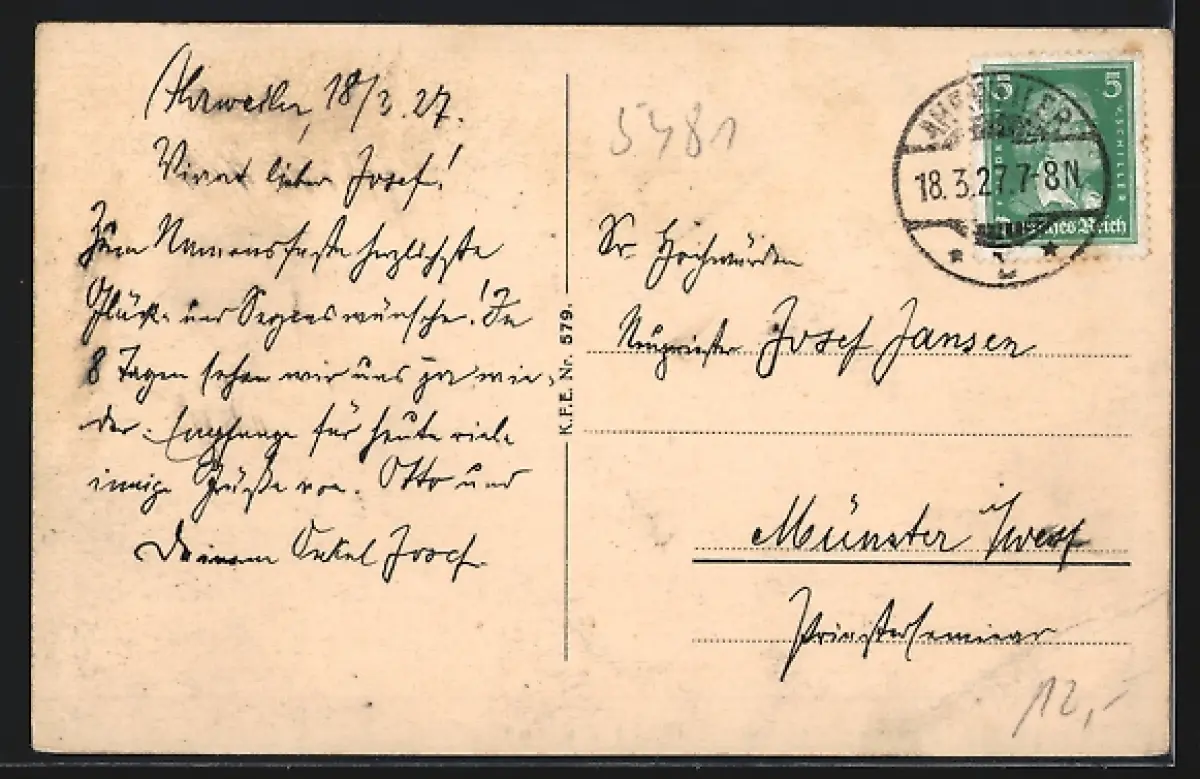 gelaufen 1927, Bugspur li. unten, guter Zustand