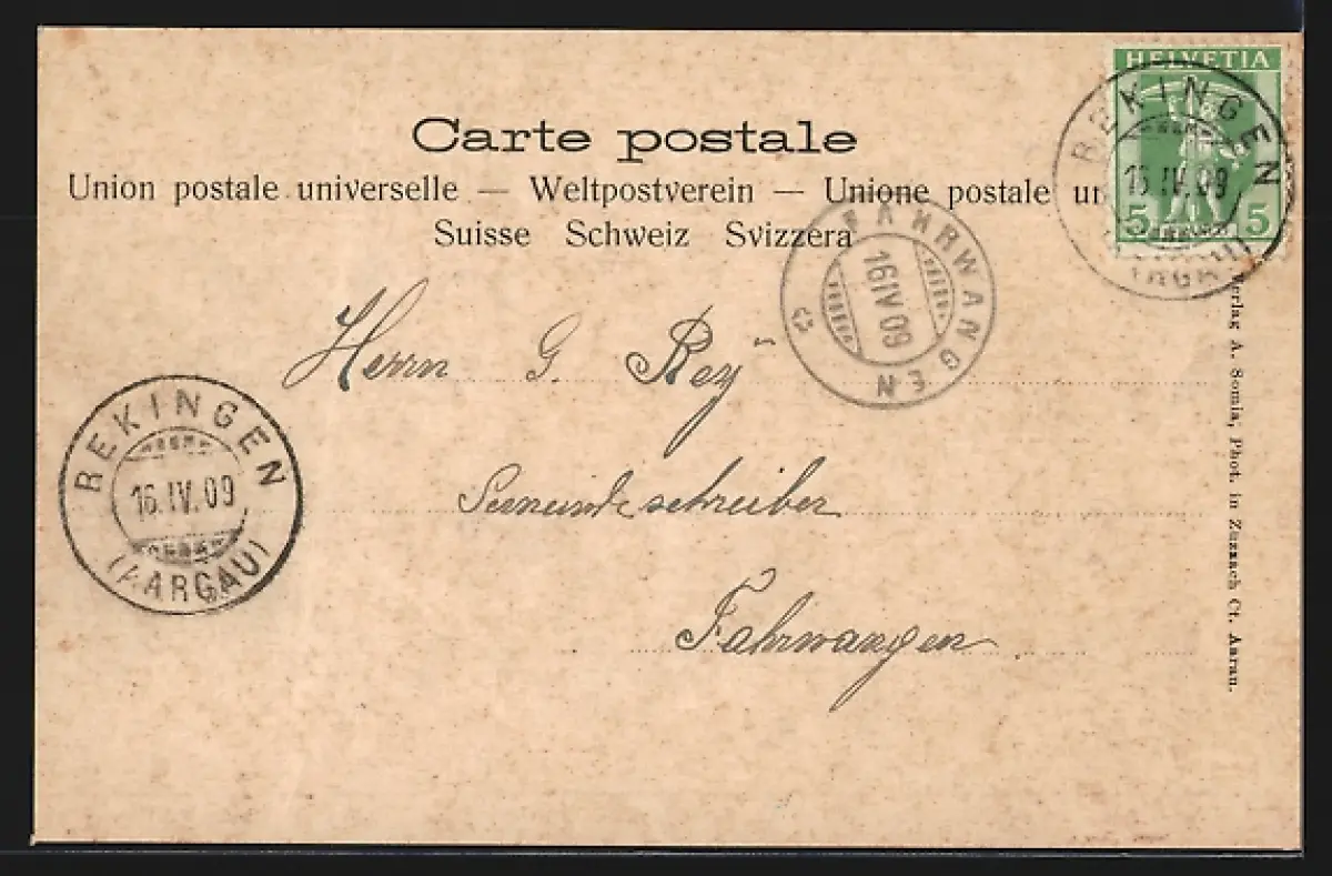alte Ansichtskarte, gelaufen 1909, Eckknick re. oben, Bugspur re. senkrecht, guter Zustand