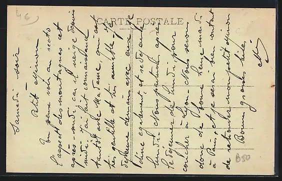 Personenbezogene Daten auf der Rückseite der Karte wurden durch blauen Textmarker unkenntlich gemacht. Die blauen Stellen sind auf die Vorderseite durchgeweicht und wirken sich negativ auf das Postkartenfoto aus