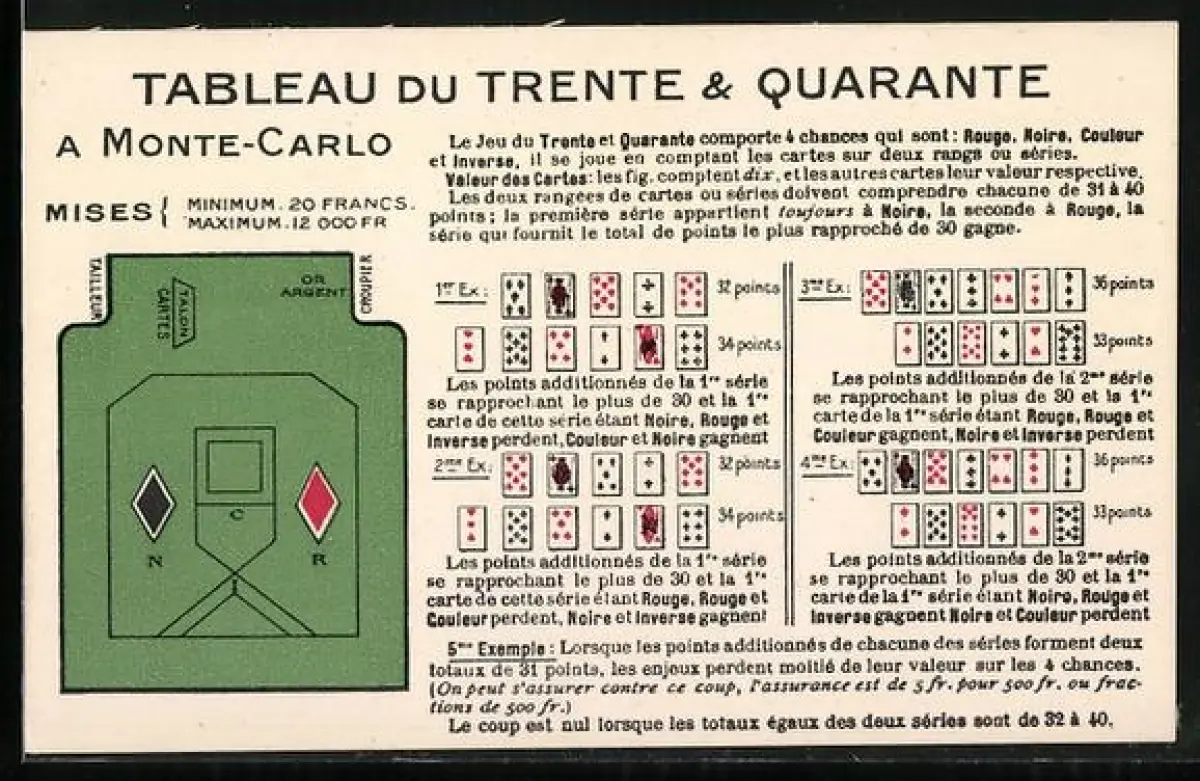 AK Regeln des Roulette-Spiels, tableau du trente & quarante a Monte Carlo