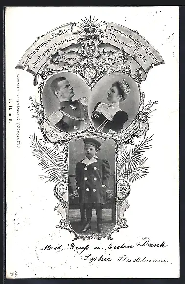 AK Regensburg, 150 jährige Residenz des Fürstenhauses von Thurn & Taxis in der Stadt 1898, Erbprinz Franz Joseph