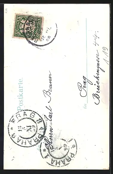 alte Ansichtskarte, gelaufen 1899, Stempelspur, guter Zustand