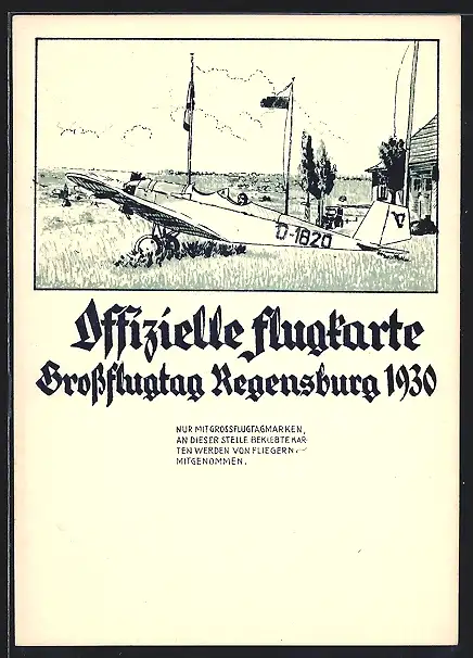 AK Regensburg, Grossflugtag 1930, Flugzeug auf dem Flugplatz