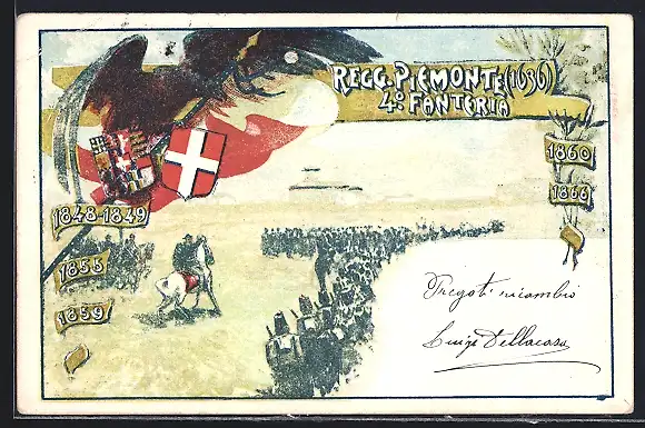AK Reggimento Piemonte, 4. Fanteria, Infanterie im Marsch, Adler mit Wappen