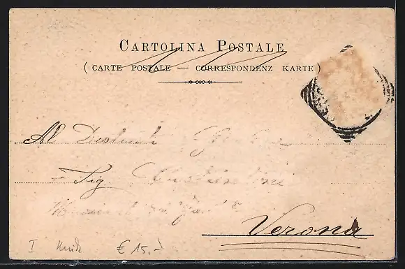 alte Ansichtskarte, gelaufen, Briefmarke entfernt, Stempelspur, guter Zustand