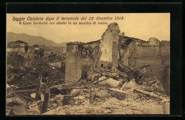 AK Reggio Calabria, Il terremoto 1908, Il Corso Garibaldi ora ridotto in un mucchio di rovine, Erdbeben
