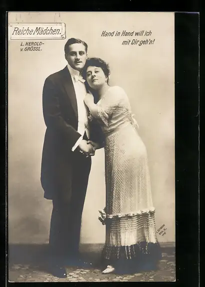 AK Reiche Mädchen, Sänger L. Herold und V. Grössl, Hand in Hand will ich mit Dir geh`n, Operette