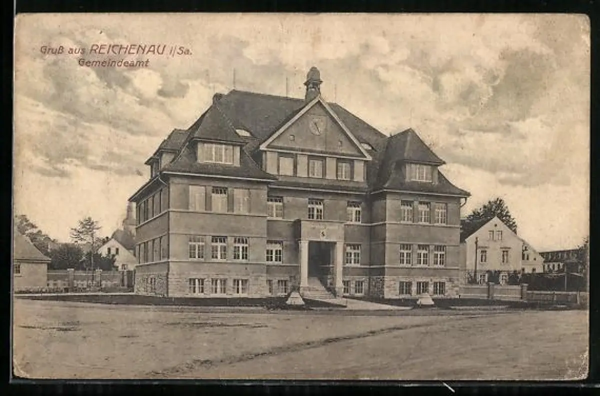 AK Reichenau i. S., Gemeindeamt mit Strassenpartie