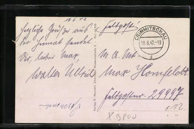 alte Ansichtskarte, gelaufen 1942 als Feldpost, guter Zustand