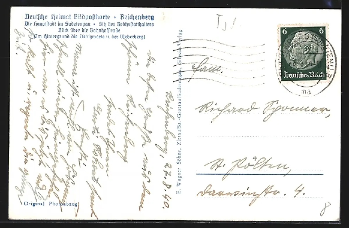 AK Reichenberg, Blick über die Bahnhofstrasse